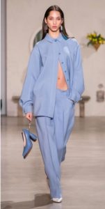 Romantico, super portabile e mai scontato: nella palette cromatica fall/winter compare anche l’Azzurro Carta da Zucchero. Ideale per completi femminili, maglioni coccolosi e cappotti comfy, questo punto di azzurro è stato avvistato sulle passerelle di Ermanno Scervino, Marc Jacobs e Jacquemus.