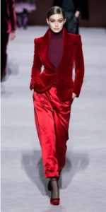 In passerella lo abbiamo visto soprattutto in accoppiata a materiali estremamente ricercati, capaci di esaltarlo al meglio, come il velluto e lo shantung di seta.