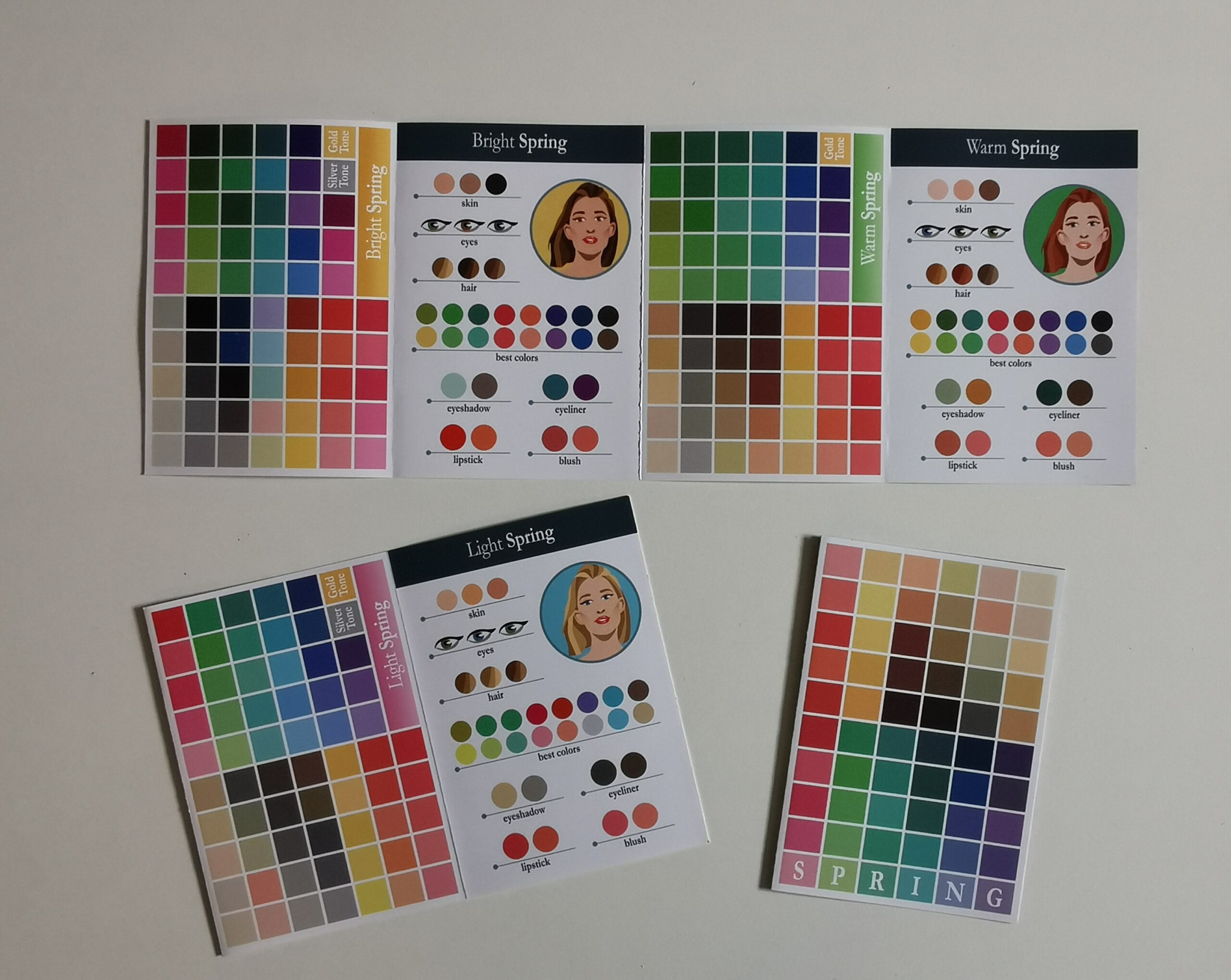Kit 10 pieghevoli dedicati alla stagione Spring e ai tre sottogruppi (Bright, Light, Warm).